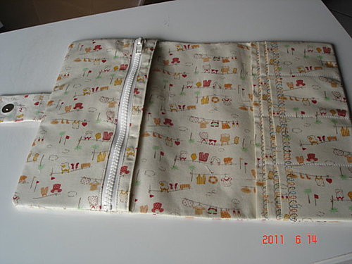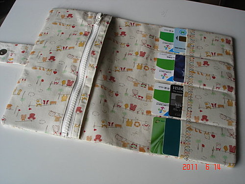 裏面做了些小修改,希望boomi別在意。寶寶的媽媽希望是磁扣型式,可能鬆緊帶容易拉鬆吧,我猜啦。另外內裏改成8格卡片格式,要裝健保卡或掛號證、還是提款卡或信用卡,都很方便