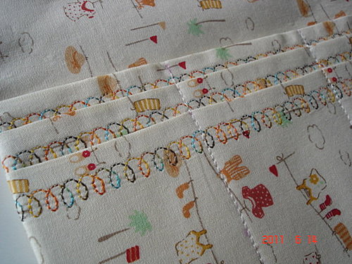 緞染線的顏色很漂亮唷,搭配簡單的圓弧線條,就會讓整個布書衣看起來很活潑