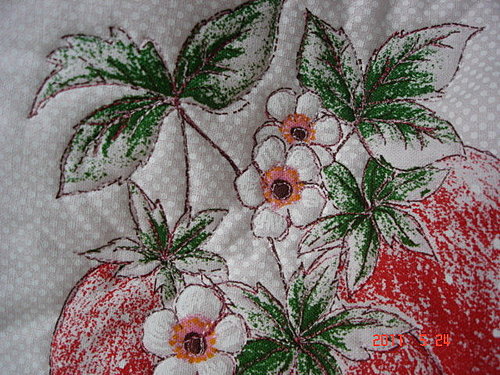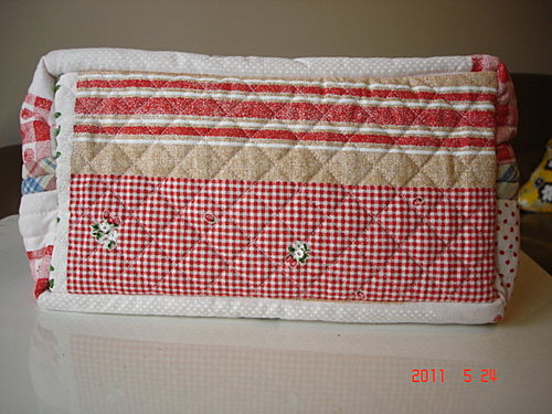 正面,取草苺布圖案,並在上面做自由曲線壓線