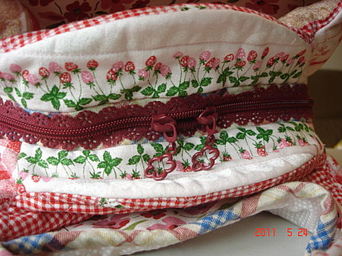 拉鍊布是取另外一種草苺圖案,把草苺種在拉鍊兩旁,很有巧思